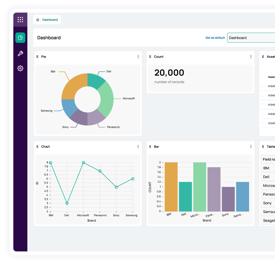 Easily review the state of your asset inventory with robust reporting and dashboards.