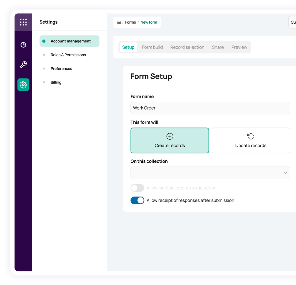 Create clear audit trails with custom smart forms that streamline and standardize your core tasks, including: